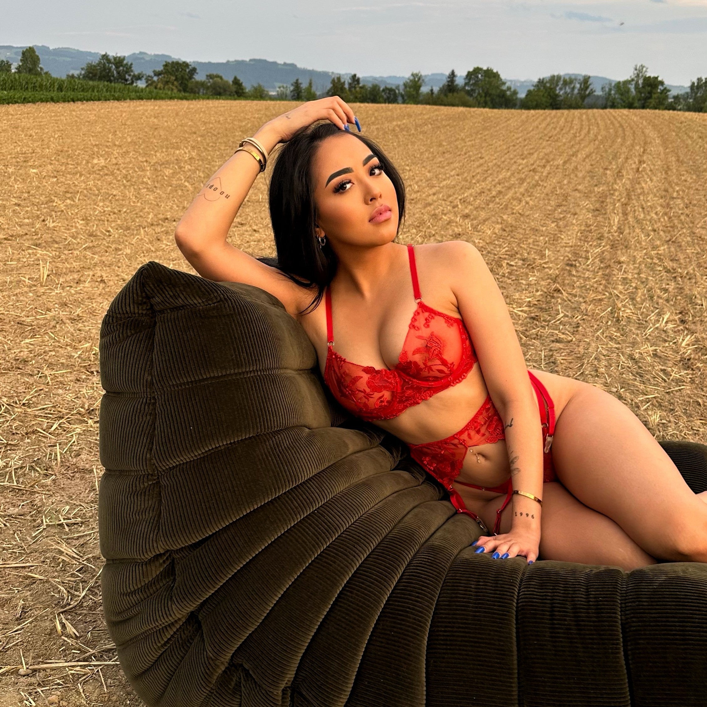 Entdecke unsere exklusiven Intimates-Sets. Die hochwertige, strukturierte Spitze wird durch eine elegante Blumenstickerei und traumhaften, goldenen Applikationen perfekt ergänzt. Dieses luxuriöse Set besticht durch seine raffinierte Kombination aus Romantik und Sinnlichkeit, das sowohl in der Statement-Farbe Provocateur Rouge als auch in dem edlen Sapphire Blue erhältlich ist. Tauche ein in puren Luxus und fühle dich umwerfend in diesem atemberaubenden Design, das jedem Anlass gerecht wird.